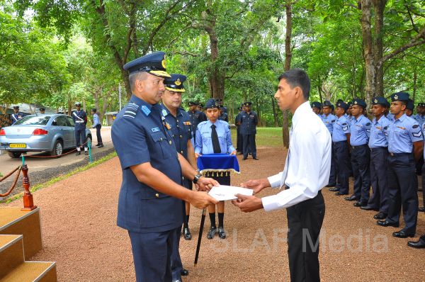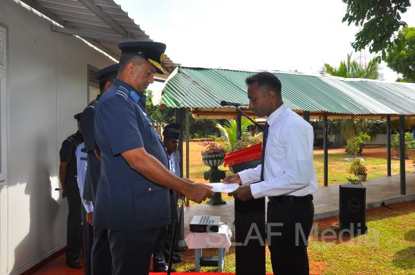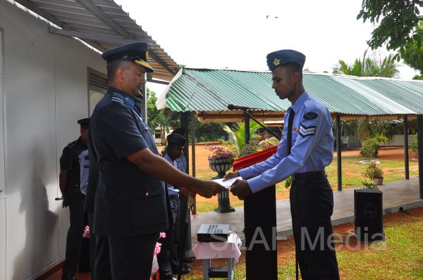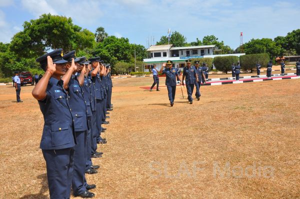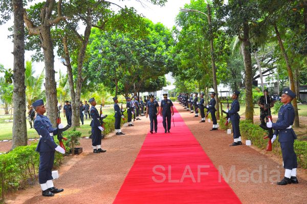 The Commanding Officer SLAF Unit Bandaranayake International Airport, Group Captain KKAK Kaluarachchi received the Commander who was afforded a street lining which was commanded by Flight Lieutenant MCN Rathnayake.