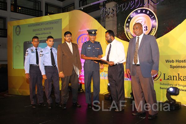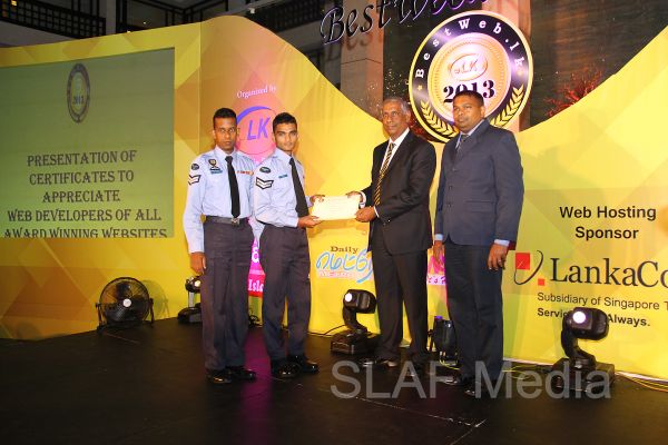 The Sri Lanka Air Force (SLAF) official website, www.airforce.lk was awarded the Bronze Award in the Government category and Certificate of Appreciation to Web developers in the Best Web Competition 2013. The award was received at a ceremony held at the Cinnamon Grand Hotel “Atrium” yesterday evening (14th August 2013).