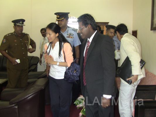Princess Tsuguko of Takamado, the eldest daughter of Japanese Prince Takamado who is a first cousin of His Majesty the Emperor Akihito along with the Sri Lankan Ambassador to Japan Admiral Wasantha Karannagoda and delegation terminated their three day journey to visit some of the UNESCO World Heritage sites and other sites of historical importance in Sri Lanka on a chartered Helitours MI 17 Helicopter this morning (22th August 2013) at the MOD grounds in Colombo.