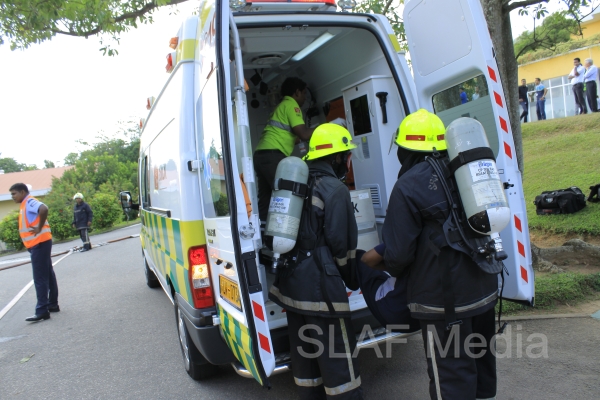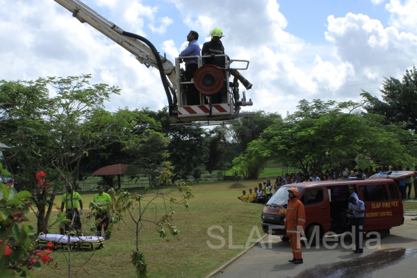 More than 450 personnel from the Millennium IT Software (Pvt) Ltd participated in the fire drill. The SLAF rescue team which comprised 28 highly skilled personnel participated in the fire fighting and rescue exercise which was carried out under the instruction of Chief Fire Officer of the SLAF Group Captain PMCP Dias who was present at the location thought the exercise.