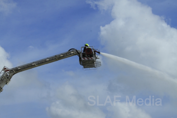 This evacuation drill demonstrated rescue operations relevant to high-rise buildings. It included a roof top rescue where people who had fled to the top of the building to escape the simulated fire and were brought down using the “Bronto Sky Lift” which could rescue efficiently the people who trapped in high rise buildings.