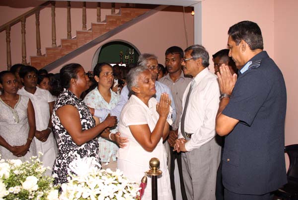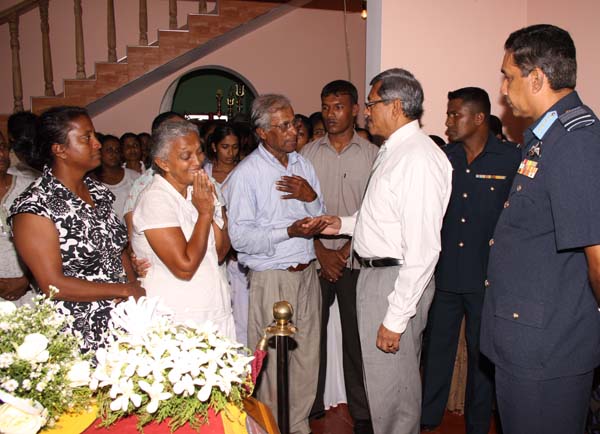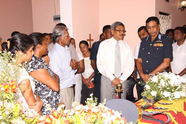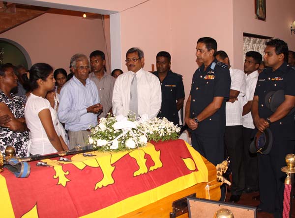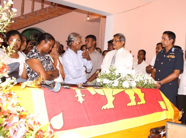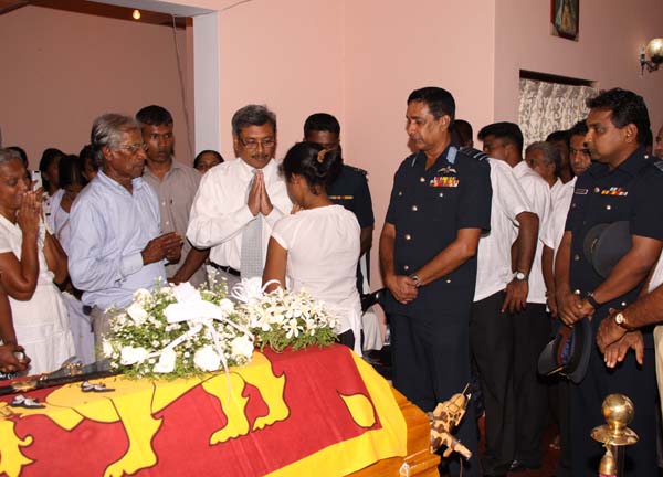 The secretary defence Mr. Gotabaya Rajapaksha and the Acting Chief of Defence Staff and Commander of the Air Force Air Chief Marshal Roshan Goonetileke payed their last respects (29 November 2009) to late Squadron Leader Rehan Fernando who was killed in the MI-24 crash in Buttala.