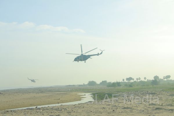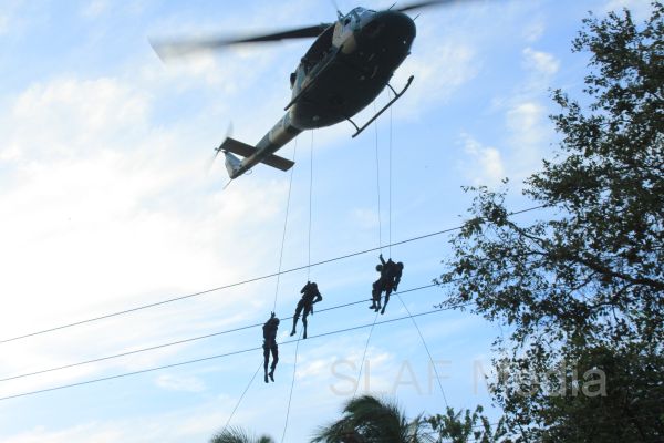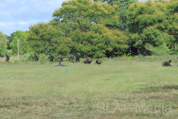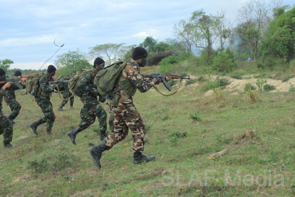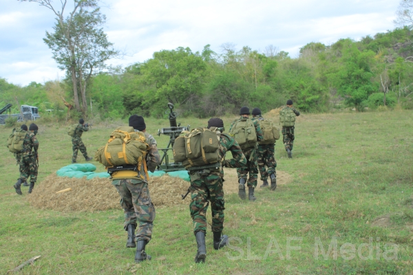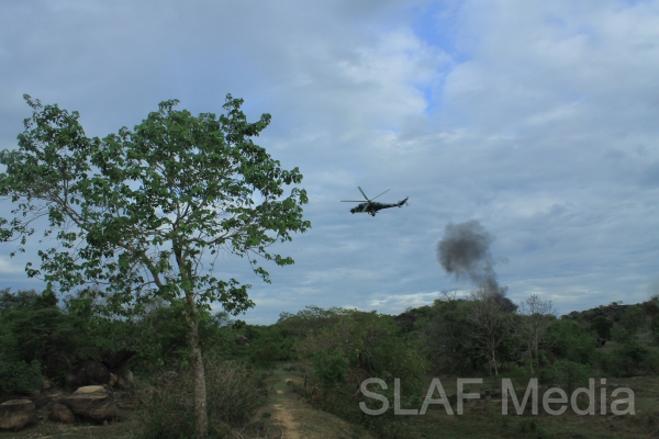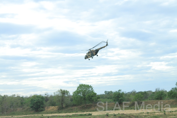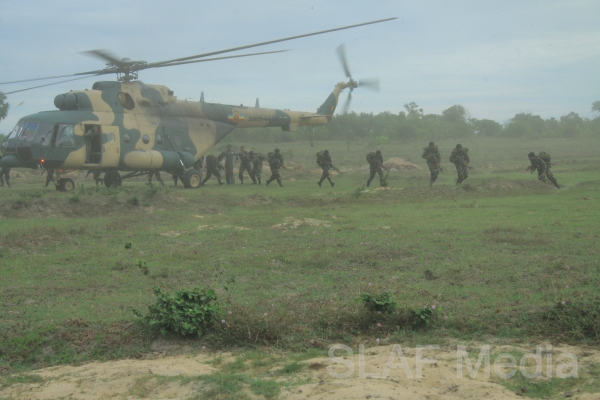 Air contribution was made by the simulation of engaging high value targets deploying Kfir, Mig-27 and F-7 fighter Jets and MI 24 Flying Gunships which simulated Battlefield Air Interdiction (BAI) and Battlefield Air Strikes (BAS) respectively. The SLAF also provided Tactical Airlift which included Air Cargo, paratroopers and troop transportation within this simulated theatre of operation. AN 32 Aircraft, MI 17 and Bell 212 helicopters also played a vital role in the exercise by facilitating the insertion of Special Forces and Commandos of the Army and Regiment Special Forces of the Air Force into the theatre. Extraction of troops and Casualty Evacuation (CASEVAC) from simulated battle areas were also carried out by MI 17 and Bell 212 helicopters.