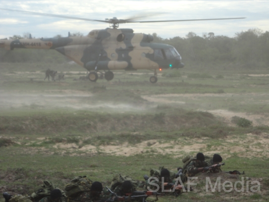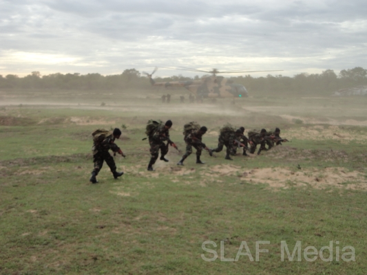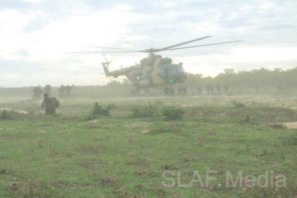 The Directorate of Operation of the Sri Lanka Air Force handled all Air Operations of this joint exercise which was coordinated by Group Captain Ravindra Liyanagamage who had played the role as the Senior Air Force Coordinator. The de-briefing of this fifteen day exercise is scheduled to be conducted at Sri Lanka Army Infantry Training School Minneriya on 24th September 2013.