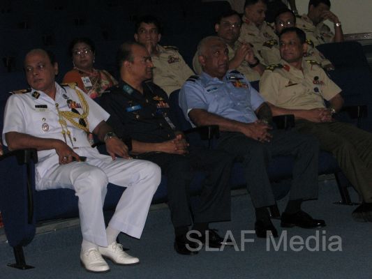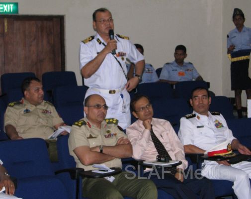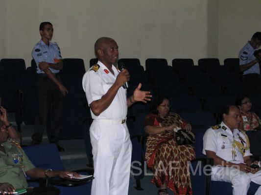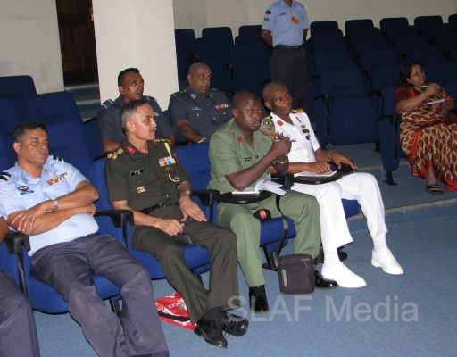 On their arrival to AFHQ, they were received by Air Vice Marshal K Yahampath, the Director Training of the Air Force. Subsequently, a presentation was conducted by Group Captain SJS Fernando, the Senior Staff Officer Air Operations on ‘post conflict role and challenges’ of the Sri Lanka Air Force. Thereafter, the delegation had the opportunity to meet the Chief of Staff of the Air Force, Air Vice Marshal, KA Gunatilleke who made himself available for an interactive Q&A Session for the benefit of the senior ranking NDC students.
