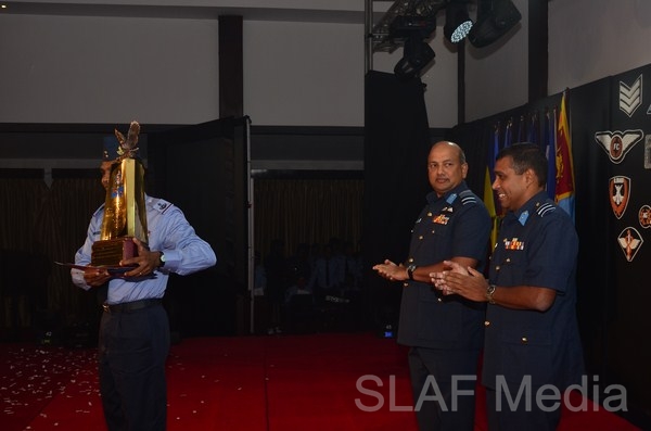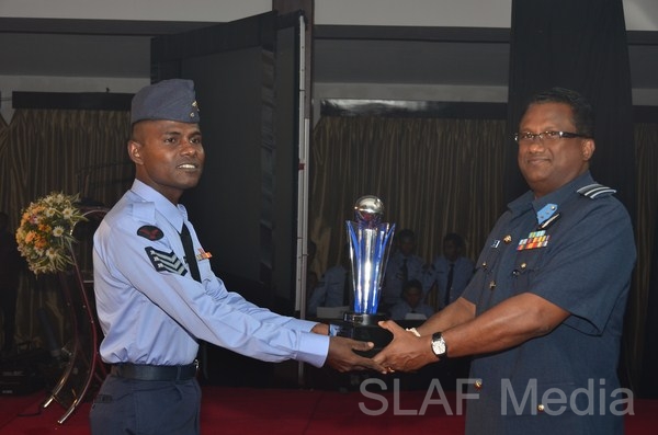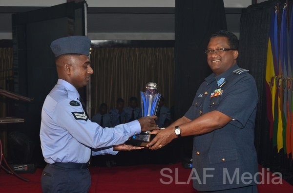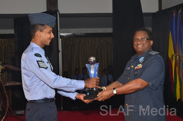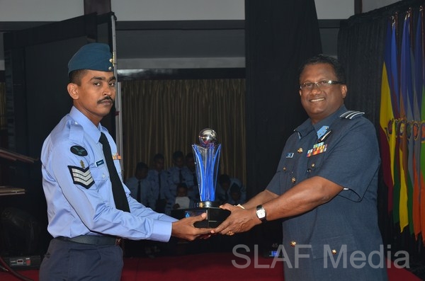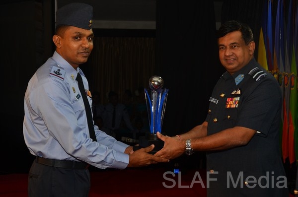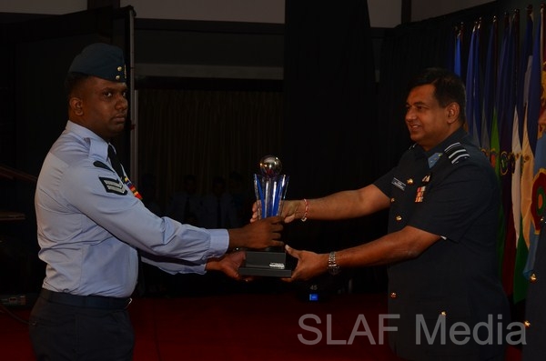 13338 Master Warrant Officer KGPC Gamage Nursing (SP1) of Sri Lanka Air Force Trade Training School Ekala, the candidate who obtained the highest points from the selection round was awarded the Most Outstanding Airman trophy. Master Warrant Officer Gamage joined the Sri Lanka Air Force in 1991 with the 64th Recruit Course as a Medical Branch tradesman. He became the best recruit of that course and after completion of 22 years of excellent service he reached the climax of his Air Force Career as the Most Outstanding Airman, which an excellent achievement, especially for a non-technical tradesman. His advice for future generations is to always do whatever job you are given with enthusiasm, integrity and motivation and never forget the reason for joining the Air Force.