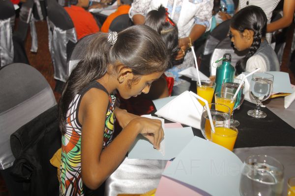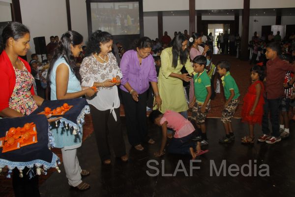 Under the guidance of Mrs Neelika Abeywickrama, the “Guwan Lama Saadaya” was organized by the Seva Vanith Unit of the Sri Lanka Air Force yesterday (06th October 2013) in lieu of the World Children’s Day. The Programme was held at the Eagles Lagoon View Banquet Hall,Katunayeke with the participation of Children of the Service personnel and Civil Employees of the SLAF. The Programme was consisted of Origami activities, Magic Show, presenting of Grants for well performed O/L & A/L Students and various children’s games.