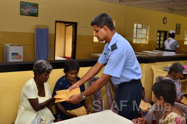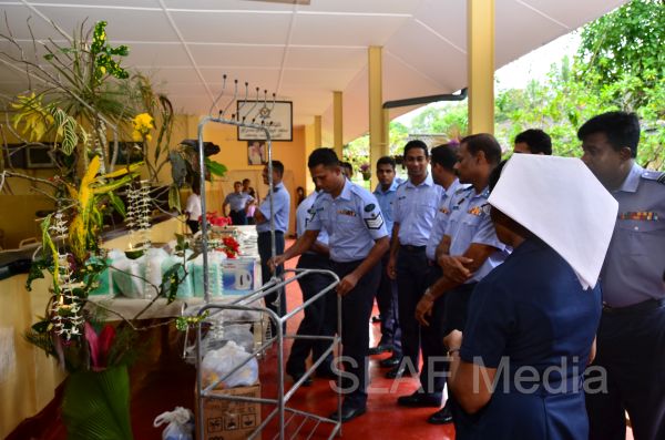 The items donated were contributed by the Seva Vanitha Units of the SLAF and by the Directorate of Welfare. The Director Welfare Air Vice Marshal MLK Perera visited the Ward on 9 October 2013 accompanied by members of the SVU and personnel of the Directorate of Welfare to formally present the donations to the hospital management and to the inmates who were also treated with a lunch.