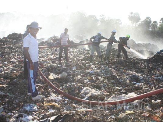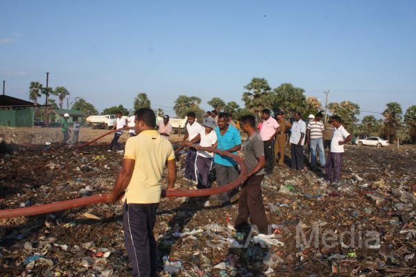 The Commanding Officer SLAF Station Batticaloa Wing Commander GSN Priyadarshana was also seen at the location guiding and assisting the troops where they were able to completely extinguish the fire at this garbage dump.