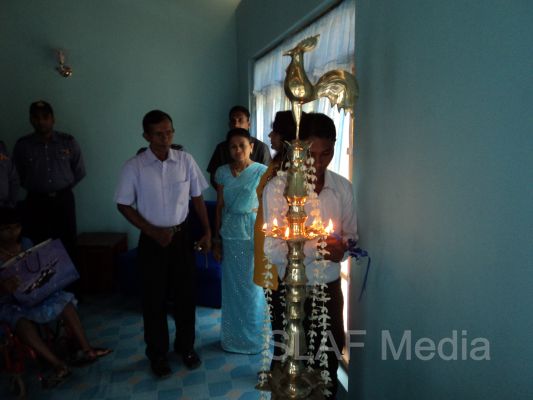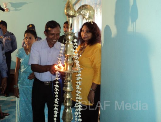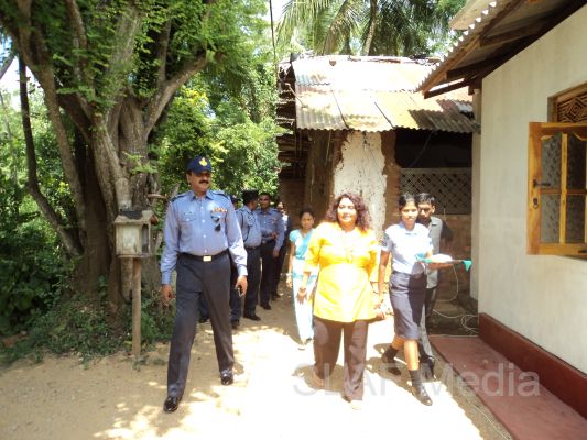 Under the guidance of the Commander of the Air Force, the Directorate of Welfare in collaboration with the Seva Vanitha Unit (SVU) of the Sri Lanka Air Force donated a new house to Mr. RPG Lakshman Rajapaksha a civil employee in the SLAF Station Sigiriya. The house warming ceremony was held in the presence of the Chairperson of SLAF Seva Vanitha Unit Mrs. Neelika Abeywickrama on 29th October 2013.