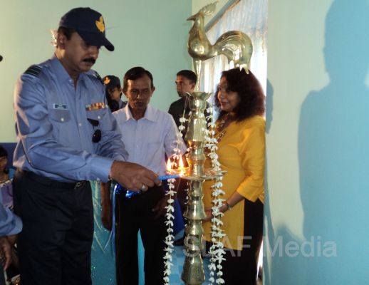 The construction project was completely undertaken by the SLAF Station Sigiriya with the contribution of manpower itself and skilled labours who were attached from the Directorate of Civil Engineering whilst the Directorate of Welfare provided monetary assistance through Command Welfare and Rehabilitation Fund (CW&RF) to complete the balance construction works of the dilapidated structure which was idling for a period of time due to financial difficulties.