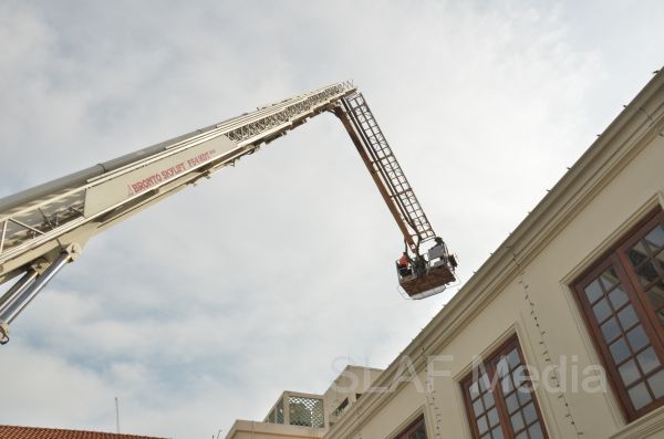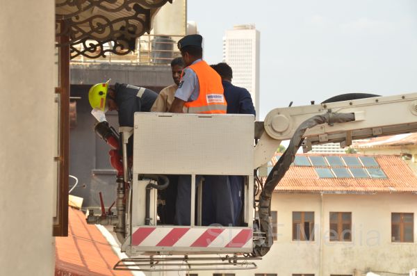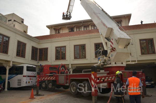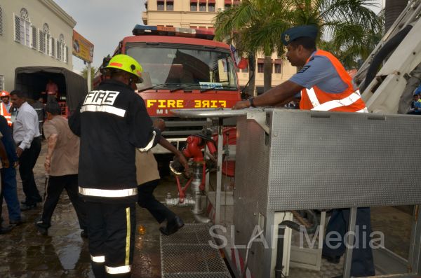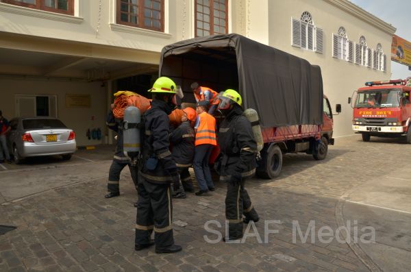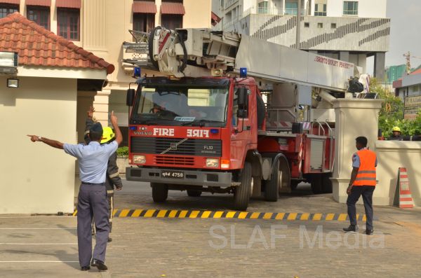 The Fire and Rescue Team of the Sri Lanka Air Force Colombo carried out a fire drill with the assistance of Fire and Rescue Team at SLAF Base Katunayake this evening (7th November 2013) at Galle Face Hotel Colombo.