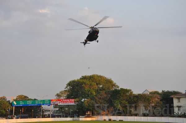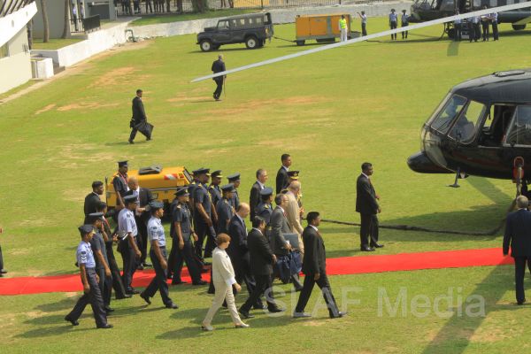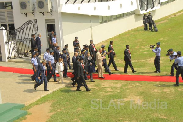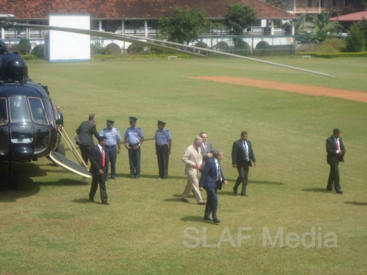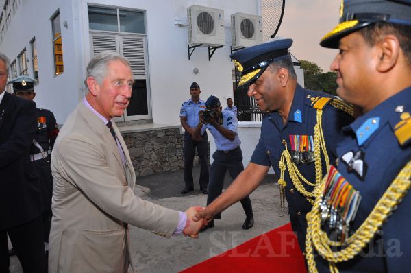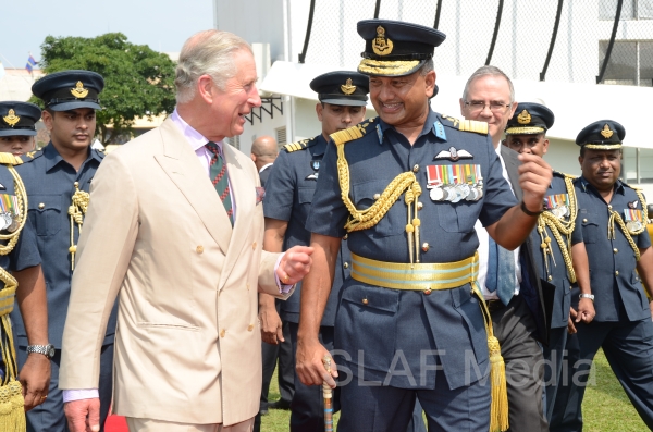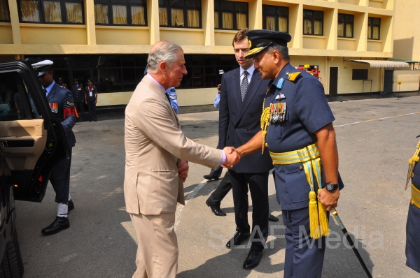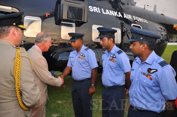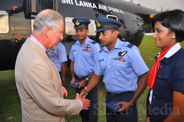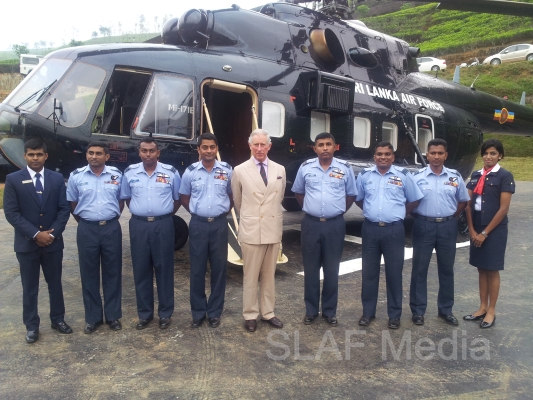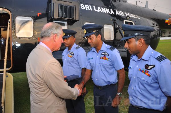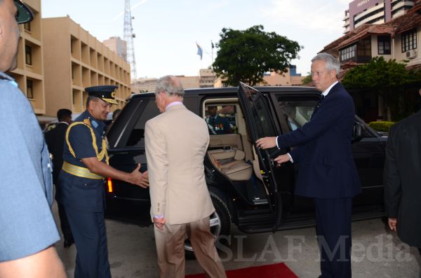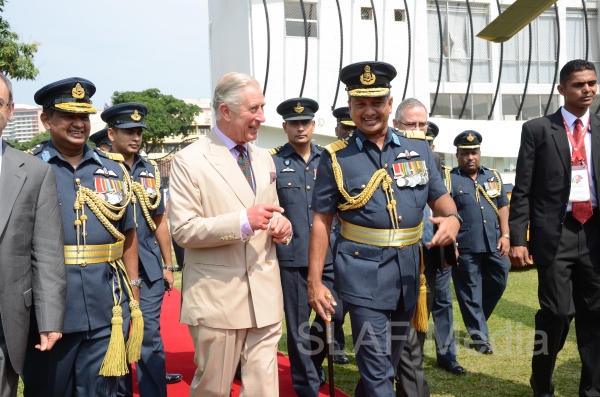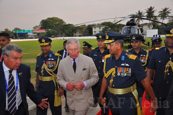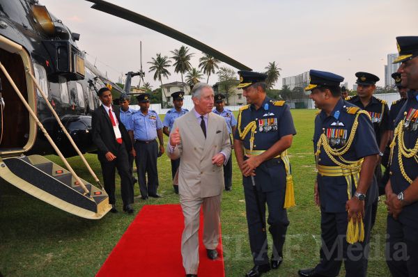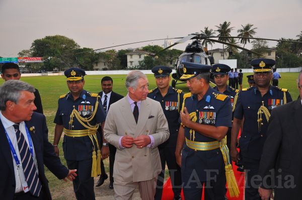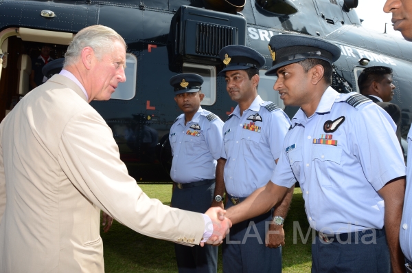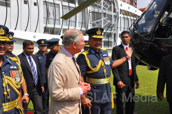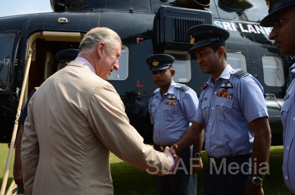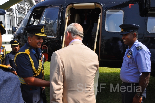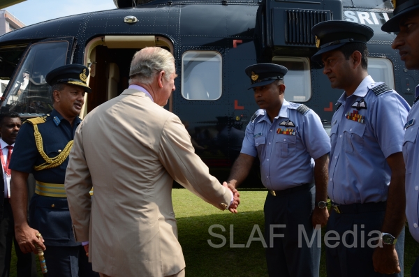 Heir to the British throne HRH Prince Charles who represents Her Majesty Queen Elizabeth at the ongoing Commonwealth Heads of Government Meeting (CHOGM) flew to Nuwara Eliya on Helitours this morning (16 November 2013). HRH who was accorded a red carpet welcome on arrival at SLAF’s Rifle Green, was received by the Commander of the Air Force Air Marshal Harsha Abeywickrama.