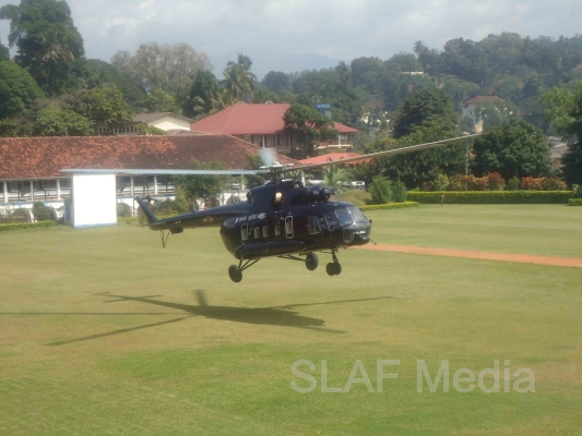 The Prince of Wales along with a delegation took off for Nuwara Eliya on two chartered Helitours MI 17 Helicopters. The contingent will spend today in Sri Lanka's hill country. In Kandy the Prince will be visiting the iconic Temple of the Tooth Relic, the British Garrison Cemetery and the historic Peredeniya Botanical Gardens. Moving on to Nuwara Eliya, he will visit tea estates too. (www.defence.lk)