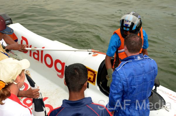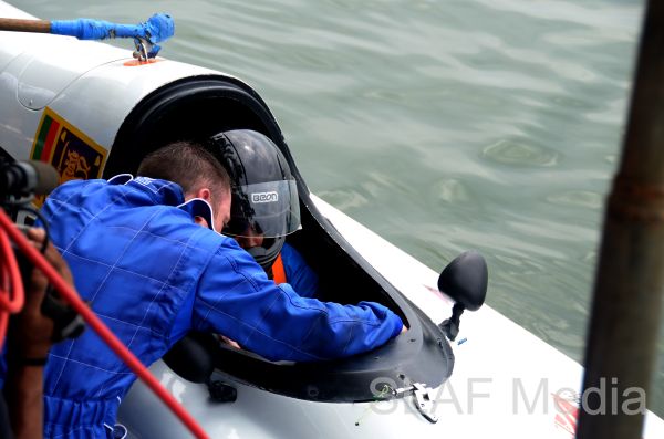 Squadron Leader AAGS Alahakoon and Flying Officer RJM Goonetileke who underwent a short training session with internationally qualified F2 Speedboat drivers from Britain participated in a three lap time-trial with other drivers from the SL Army and SL Navy. Flying Officer RJM Goonetileke emerged as the winner clocking the fastest time on the circuit.