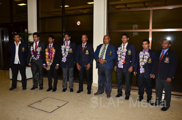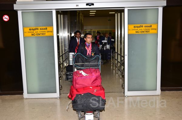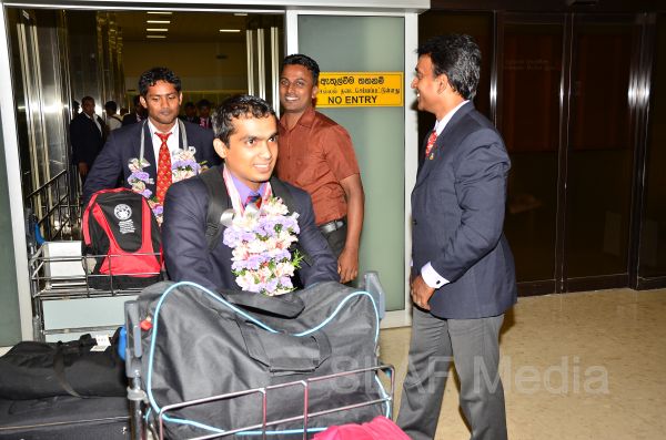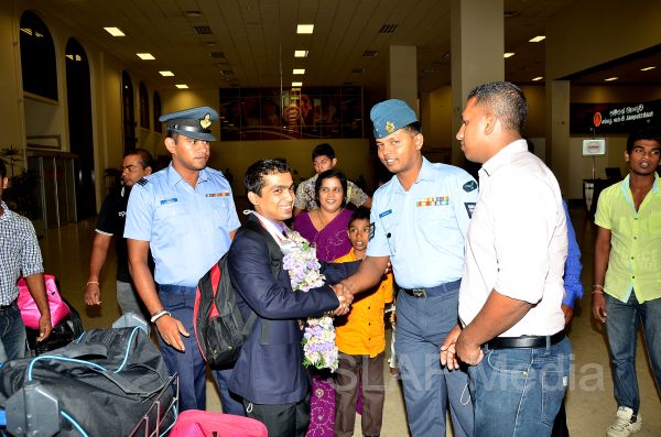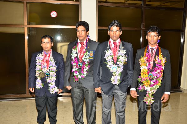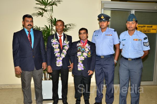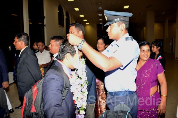 Sri Lanka Air Force Weightlifters who represented Sri Lanka as part of the National Team at the Commonwealth Weightlifting Championship - 2013 which was held in Penang, Malaysia on 24th to 30th November 2013 returned to the Island this morning (2nd November 2013) to a rousing welcome at the Bandaranaike International Airport, Katunayake.