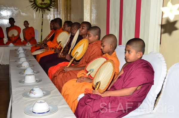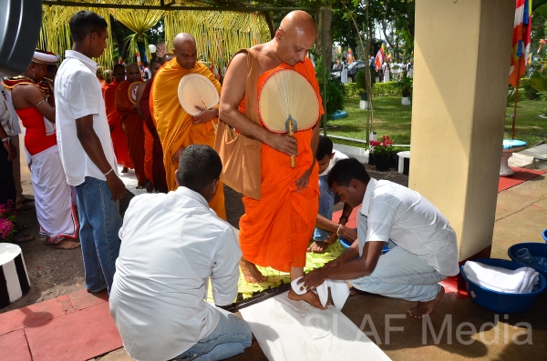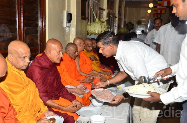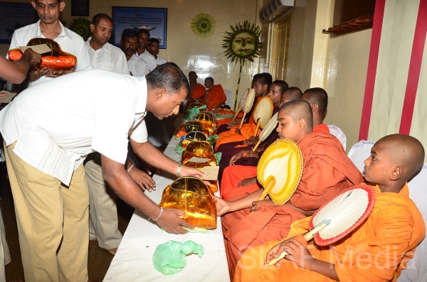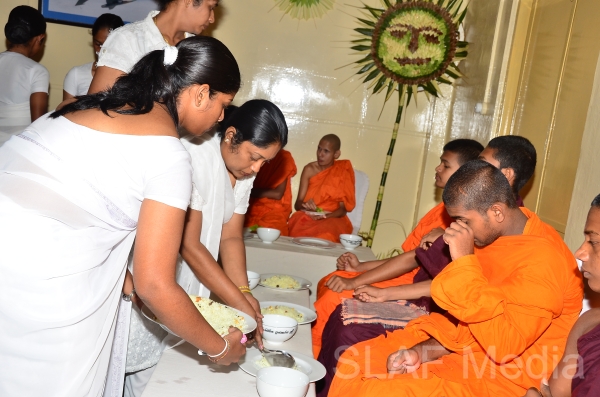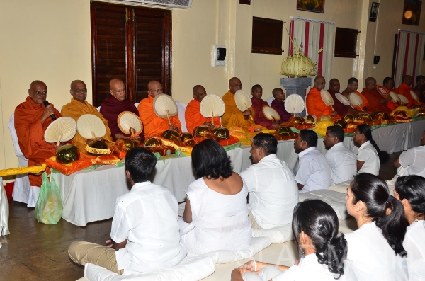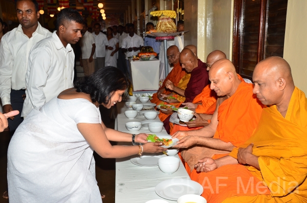Subsequent to the Pirith Chanting ceremony, an alms giving was accorded to the venerable Maha Sangha, which was followed by the presentation of 50 ‘Ata Pirikara’. This meritorious endeavour culminated, with all those who attended partaking in the alms giving.