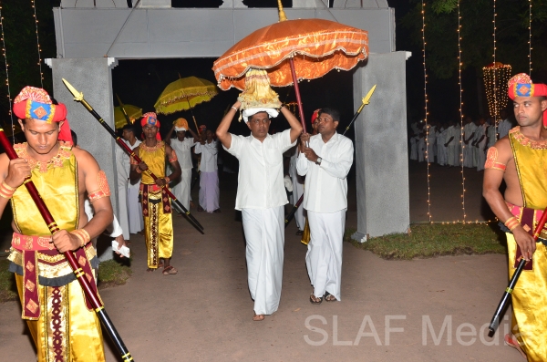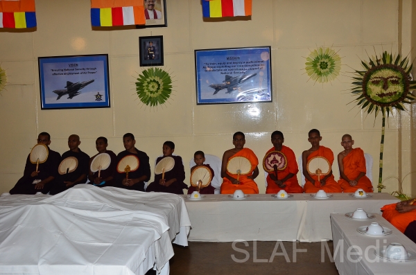 An all night ‘Pirith Chanting’ ceremony was held at Sri Lanka Air Force Base Katunayake on 29th November 2013 to invoke blessings on the souls of fallen war heroes of the Sri Lanka Air Force, who made the supreme sacrifice by defending the nation and also to bless the Commander of the Air Force, Officers, all ranks, civil servants and their families for the coming New Year 2014.