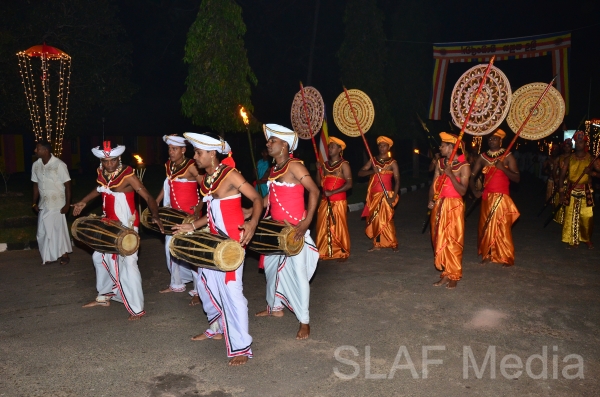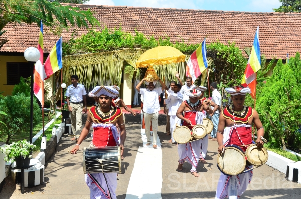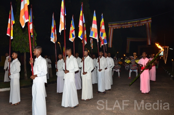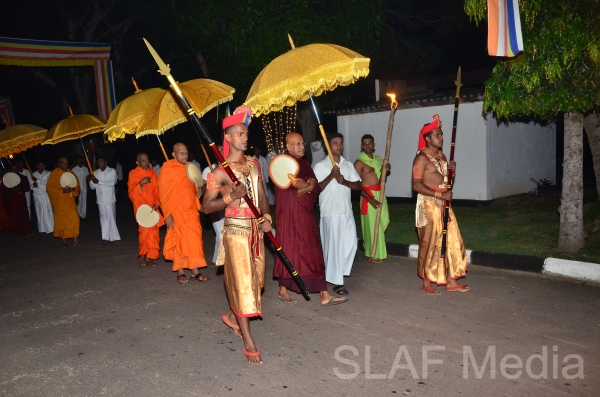 Prior to the commencement of Pirith Chanting ceremony, the ‘Reliquary’ (Karaduwa) was taken to the Base in a colorful procession and was placed within the ‘Pirith Mandapaya’ by the Base Commander Air Cdre SK Pathirana. This religious event was organized under the supervision of venerable Sumedha Thissa thero the Chief incumbent of the Abeysekararamaya Temple in Negombo and was well attended by the Commanding Officers of all Formations, service personnel and their families.