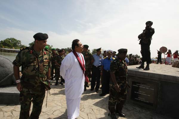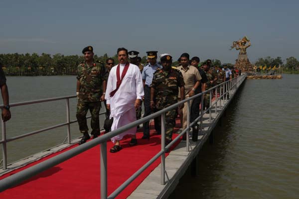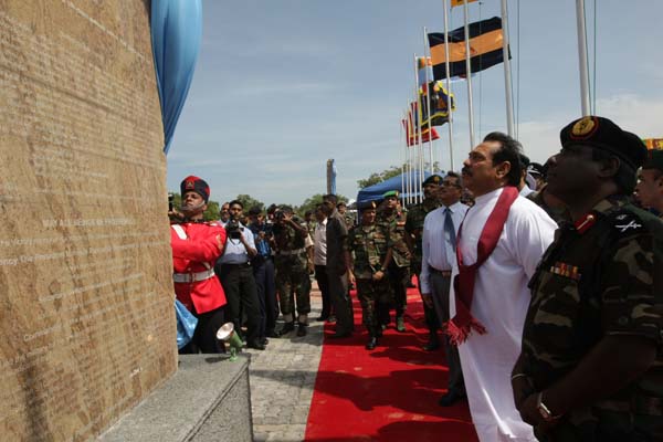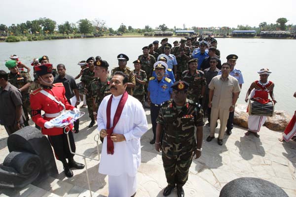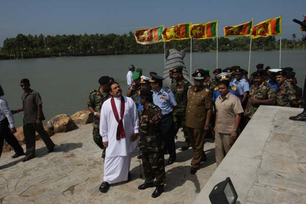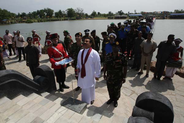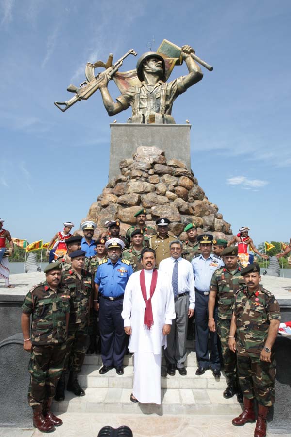 President Mahinda Rajapaksa unveiled a monument in Nandikadal lagoon in Pudumathalan, Pudukudirruppu last morning (09 December 2009) in honour of the war heroes who paid the supreme sacrifice in the final battle, to eradicate terrorism and its leadership.
