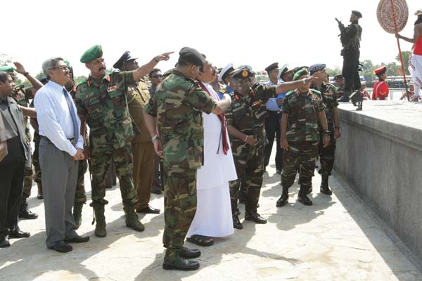 Defence Secretary Gotabaya Rajapaksa,acting Chief of Defence Staff and Air Force Commander Air Chief Marshal Roshan Goonetileke, Army Commander Lieutenant General Jagath Jayasuriya, Navy Commander Vice Admiral Thisara Samarasinghe and Inspector General of Police Mahinda Balasuriya and many other senior officers representing three forces were presented at this event.