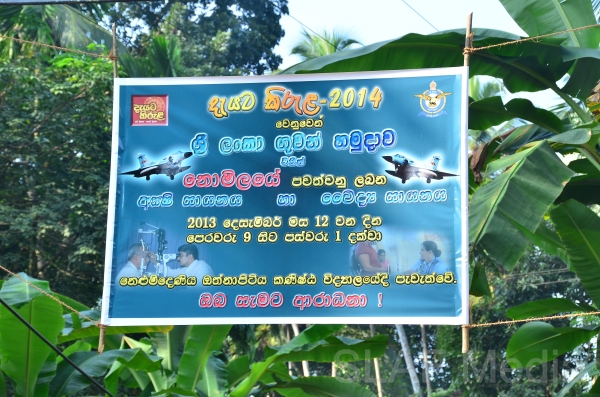 A medical clinic, renovation and construction programme was held successfully on 12th December 2013 at Othnapitiya Primary School Nelundeniya Warakapola as a part of Dayata Kirula development programme. It was conducted by the Directorate of Health Services in collaboration with Directorate of Civil Engineering and Seva Vanitha Unit of the Sri Lanka Air Force as a part of their responsibilities towards civil society.