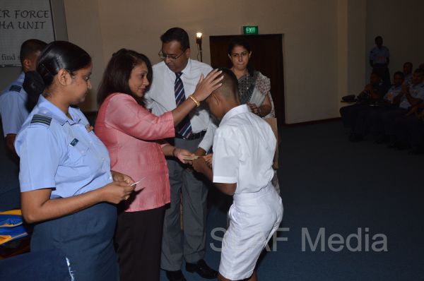 Forty seven students who obtain over 175 marks were selected and each individual was provided with a Gift Pack and a pass book of a newly opened account at Hatton National Bank (HNB) with a capital amounting Rs 5000 deposited by the Seva Vnitha Unit (SVU) of the Sri Lanka Air Force. 150 students who obtained over 160 marks were also provided with a Gift Pack and a newly opened account at HNB.