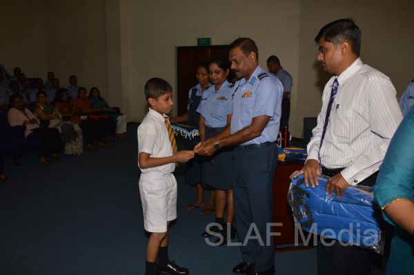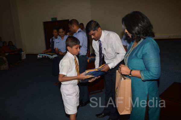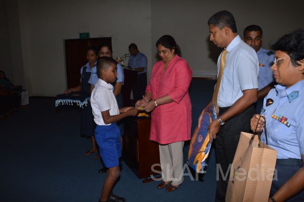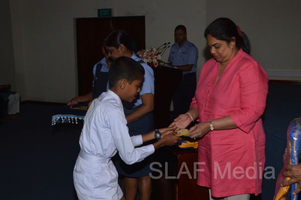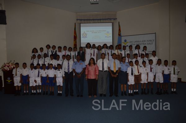 The Chairperson of the SVU of the Sri Lanka Air Force Mrs. Neelika Abeywickrama congratulated and expressed her best wishes to students who succeeded in the Grade Five Scholarship examination in 2013 during the ceremony.