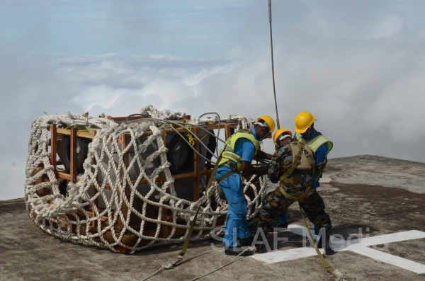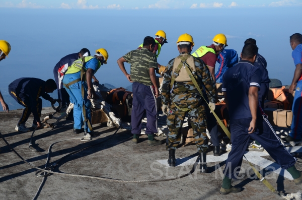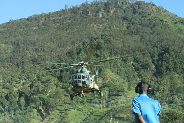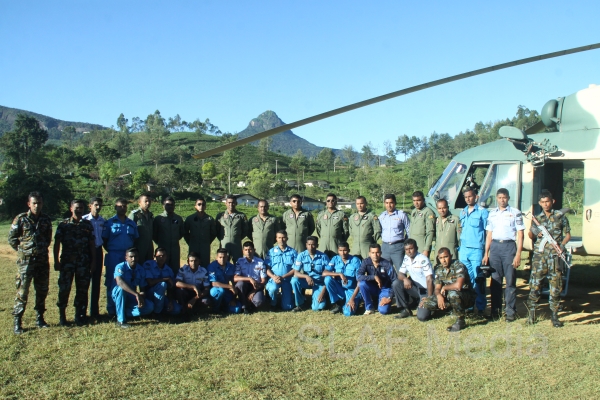 Commanding Officer No. 6 Squadron Wing Commander Kalinga Maheepala led the Operation with a team of 42 personnel of the Sri Lanka Air Force. This Under Slung Operation was a Helitours chartered operation.