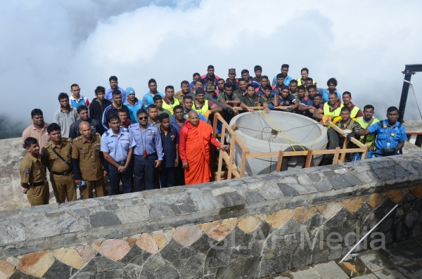 Due to the difficulty of transporting these items up the mountain, the SLAF's commercial arm 'Helitours' was contracted to airlift a Brass Bell, a Dolosmahe Pahana (eternal flame oil lamp) and other construction materials from Lakshapana Estate Sports ground, Nallathaniya by philanthropist Mr.Thusith Wijesena Chairman and CEO of Kandy City Centre.