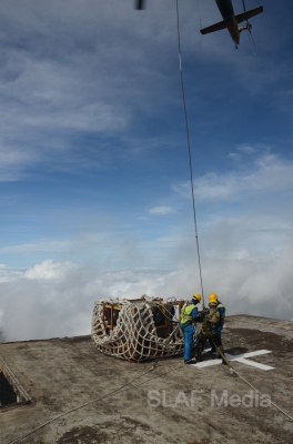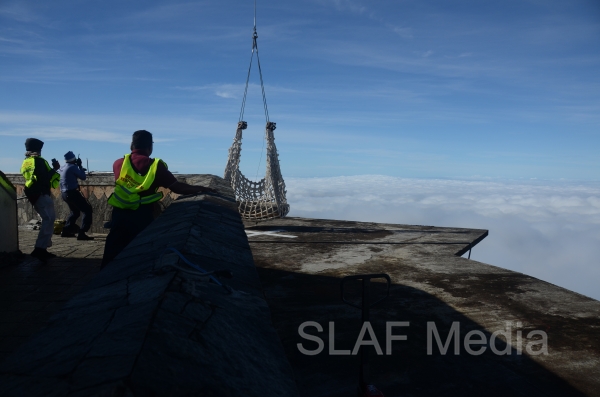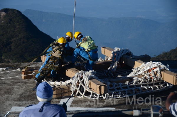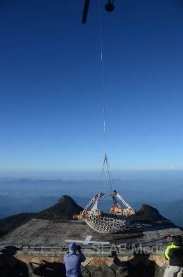 The Mi 171 helicopter of the SLAF Helitours successfully completed its Under Slung Operation at Adam’s Peak this morning (08th January 2014). The under slung operation was launched on 02nd January 2014 in order to facilitate the construction work presently being undertaken on Adam's Peak (Sri Pada).