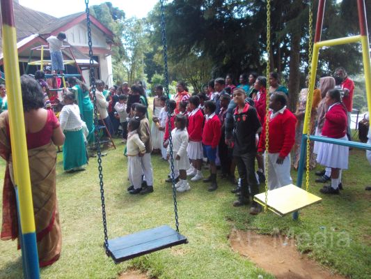 The newly constructed shelter of the staircase at the “Mencafep”, day care school centre in Nuwera Eliya for the differently able children was declared open by the Chairperson of the SLAF Seva Vanitha Unit Mrs. Neelika Abeywickrama on 21st January 2014.