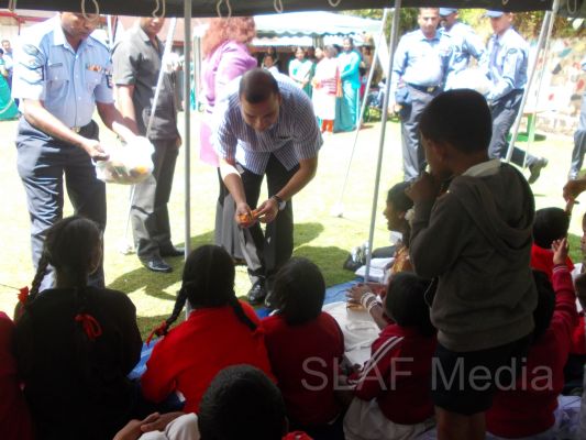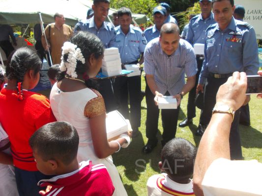 Wing Commander JMCR Jayasundara the Commanding Officer SLAF Station Piduruthalagala, Founders of the "Mencafep" day care school centre Mr. Chris Stubbs and Mrs. Ranji Stubbs, Mr. Kasun Abeywickama, SLAF personnel, and civilians were also present on the occasion.