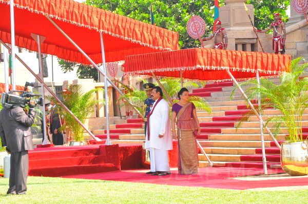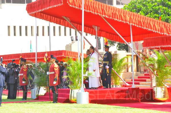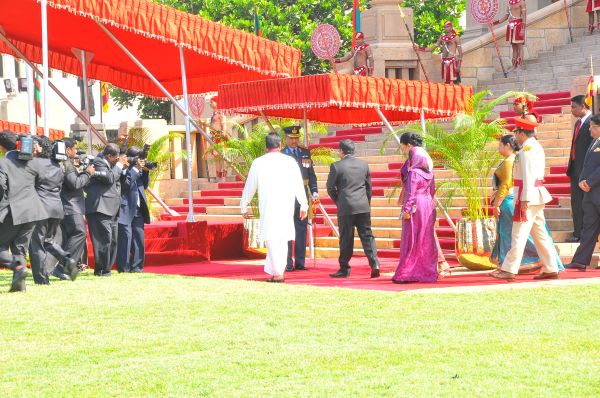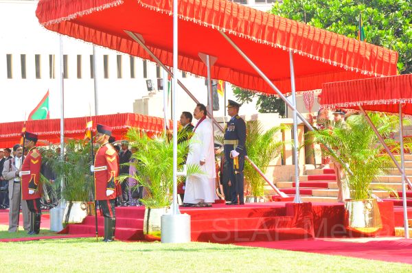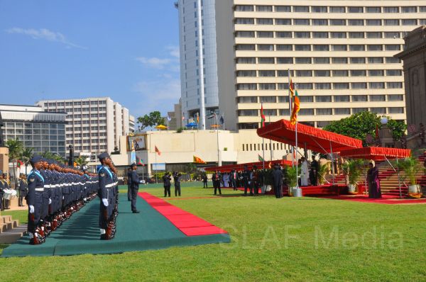 The President of the Republic of Maldives Abdulla Yameen Abdul Gayum began his three-day official visit to Sri Lanka with a guard of honour presented by the Sri Lanka Air Force this morning (22th January 2014) at the Presidential Secretariat in Colombo.