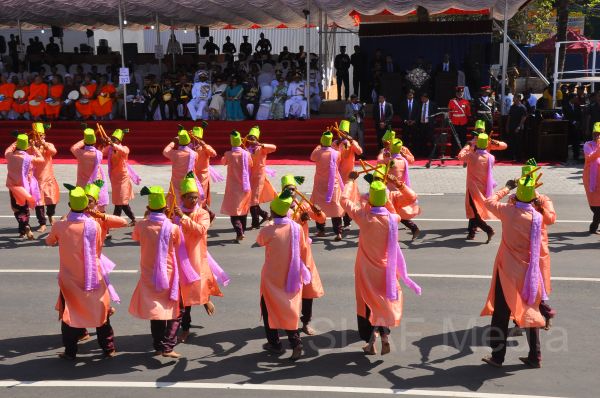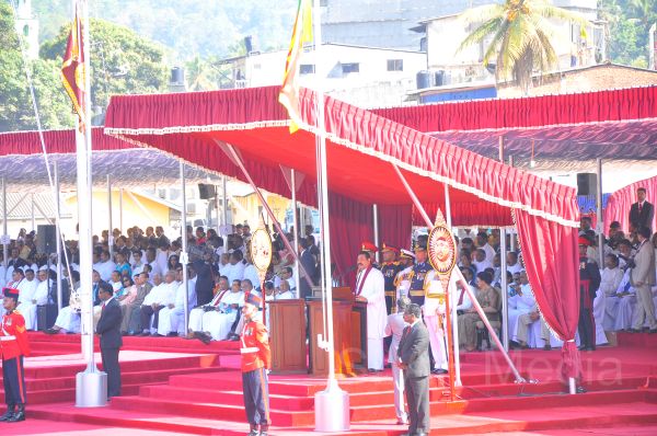 The main ceremony was dignified by the presence of His Excellency, the President Mahinda Rajapaksa and the First Lady Mrs. Shiranthi Rajapaksa. The Prime Minister, the Speaker, the Governor of the Sabaragamuwa Province, Ministers, the Chief Justice, Tri-Service Commanders, the Inspector General of the Police, State Secretaries, Diplomats and other distinguished dignitaries also graced the occasion. Religious dignitaries, Ambassadors and a massive crowd of spectators were present at the historical venue in Kegalle to witness the National Day proceedings.