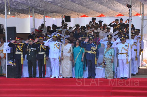 The Sri Lanka Air Force joined the parade and the honour guard with great pride with a total contingent consisting of 32 Officers and 423 Airmen and Airwomen. The SLAF parade comprising five squadrons, was Commander by Air Cdre HMSKB Kotakadeniya.
