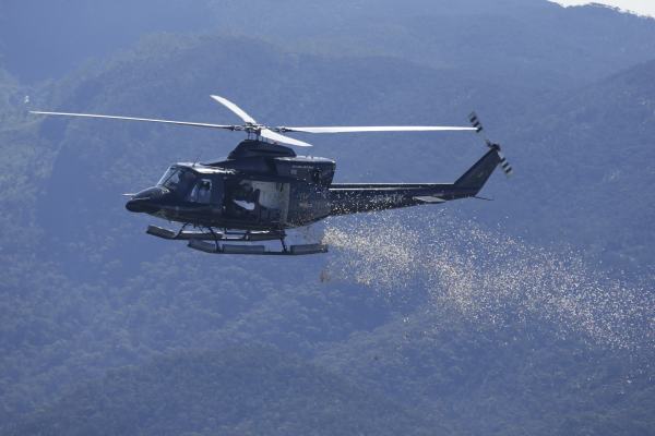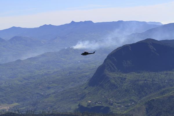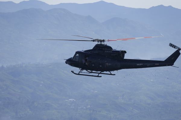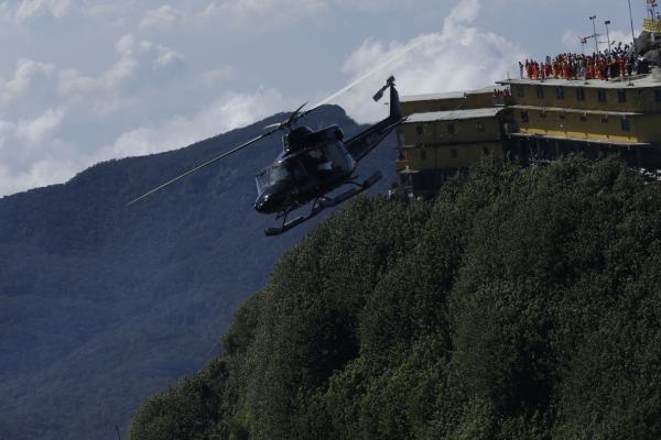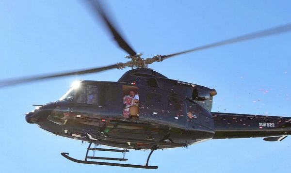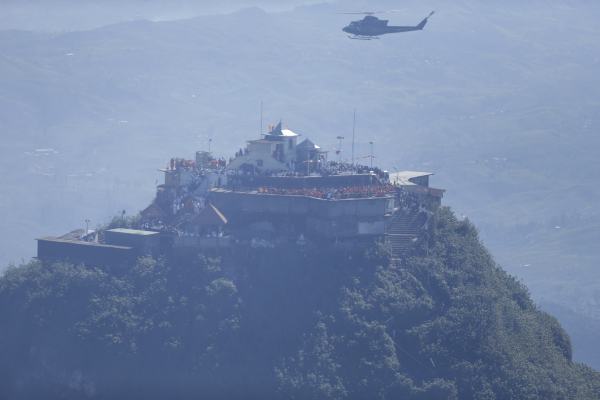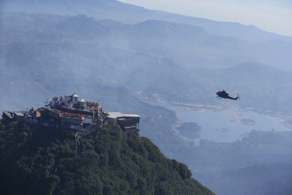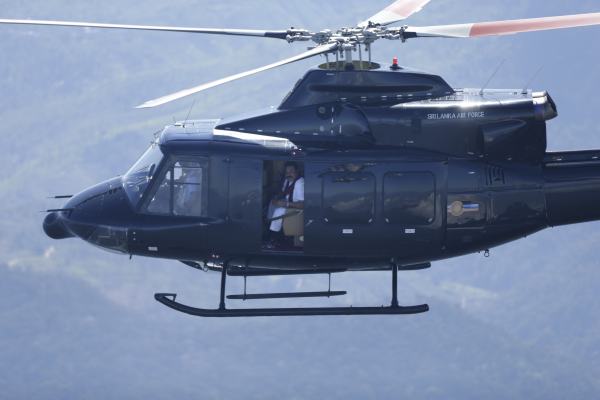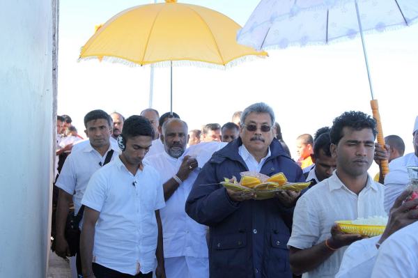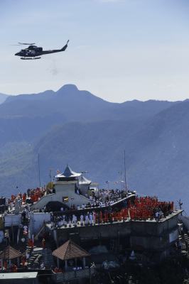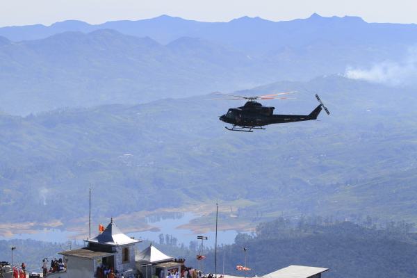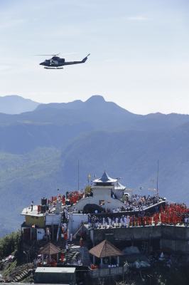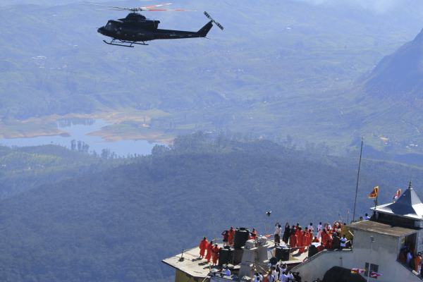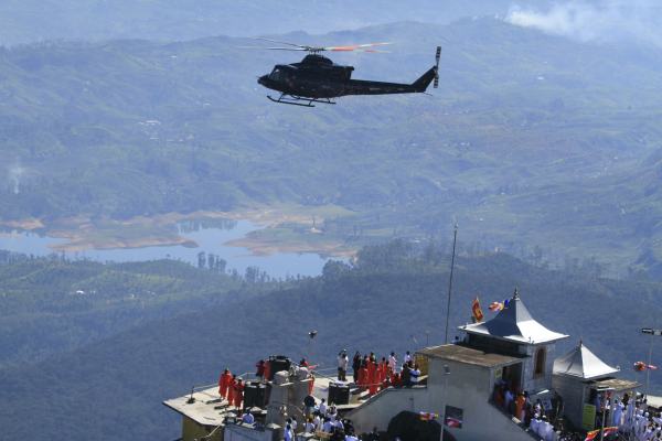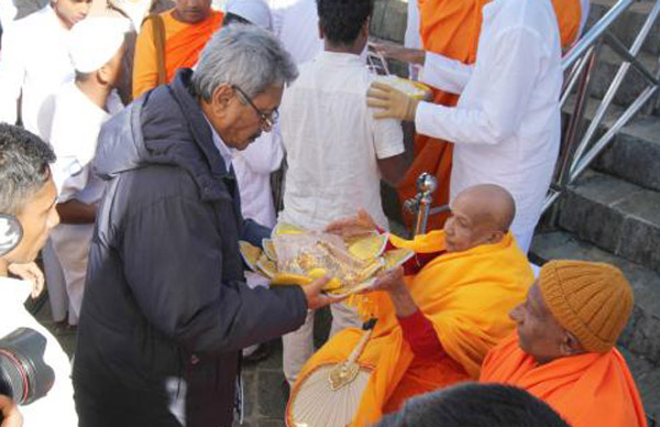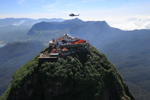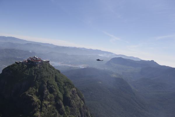 HE the President Mahinda Rajapaksa paid floral tribute from over Sri Pada from a Bell 412 Helicopter of the Sri Lanaka Air Force while the “Dolos-Mahe Pahana” and the bell tower were inaugurated by the Defence Secretary, Gotabhaya Rajapaksa.