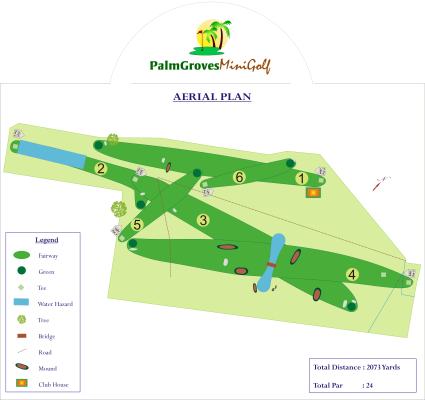 Initially, a practice range with three greens and a club house overlooking the runway was planned and constructed within a very short period using assets available at the Base. The Palm Groves Mini Golf Club was declared open on 6 September 2013. Work is ongoing to further expand the course, on completion of which, the course will be transformed into a 6-Hole Golf Course meeting the specifications of the International Golf Federation.