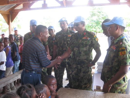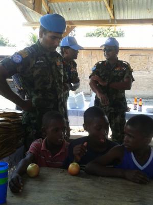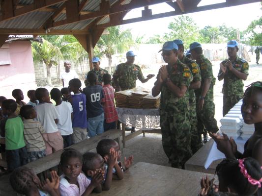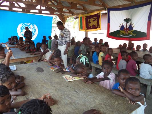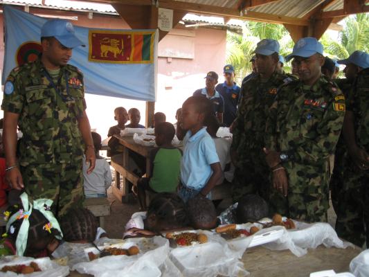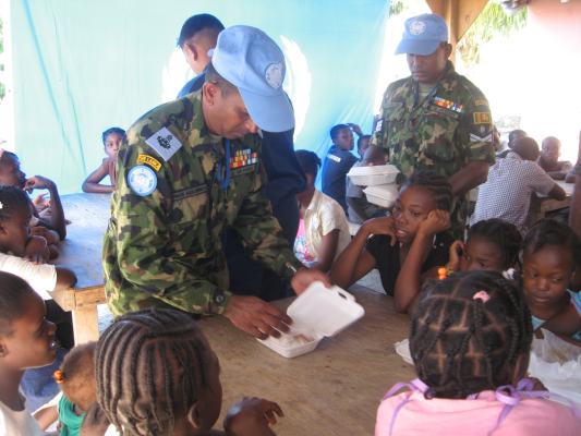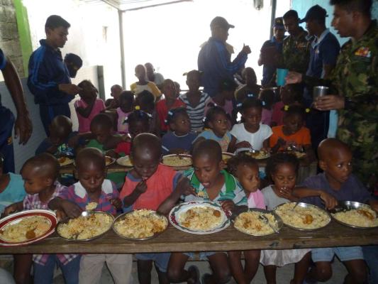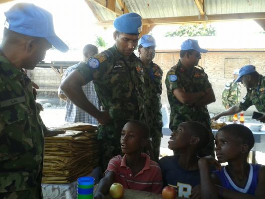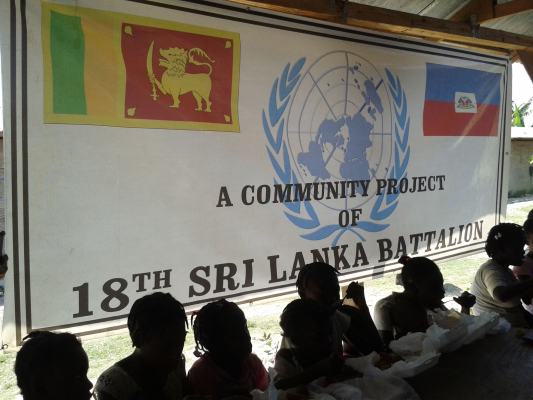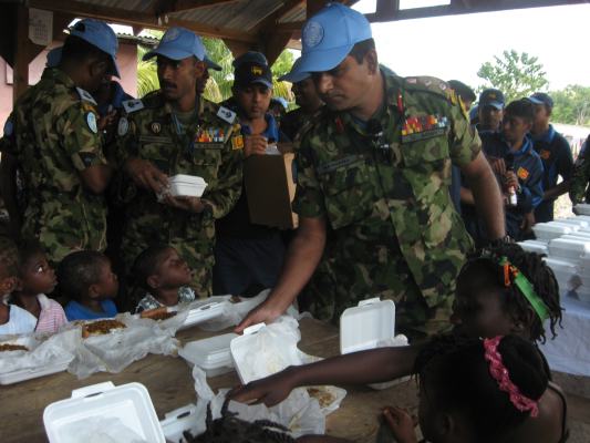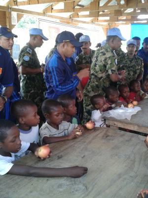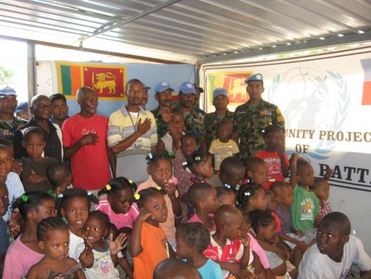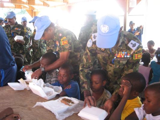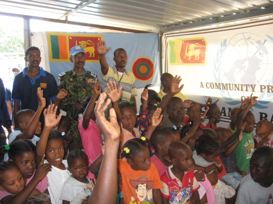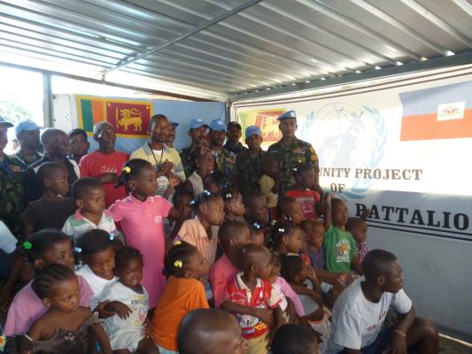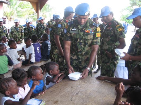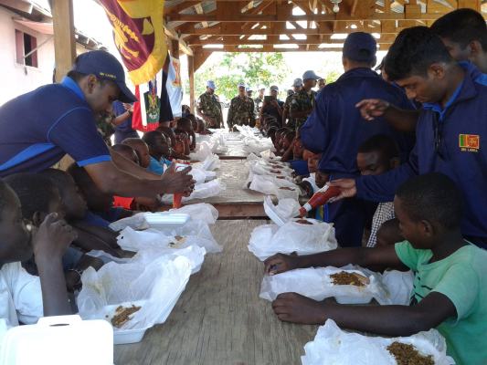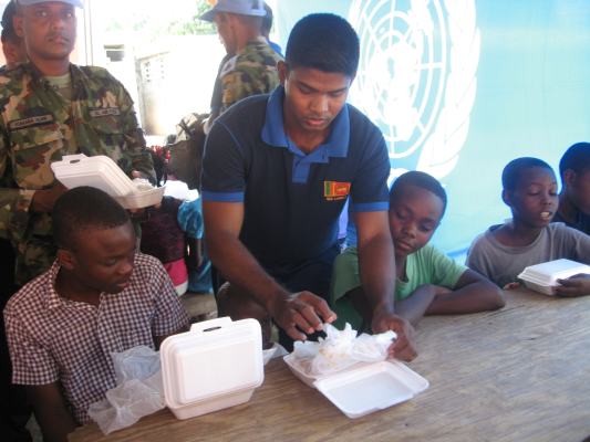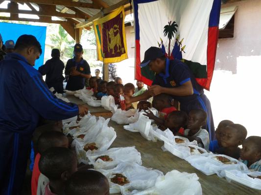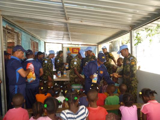 The SLAF contingent in Haiti with 18 Sri Lanka battalion celebrated the 63rd anniversary of Sri Lanka Air Force on 3 March by engaging in community service activities focused on three orphanages that are home to children who were affected by the earthquake during 2010 in Haiti. The members of the contingent donated food, medicine, sanitary items and stationary items while troops also helped clean the surroundings of the orphanages.