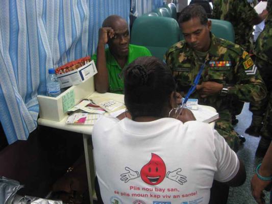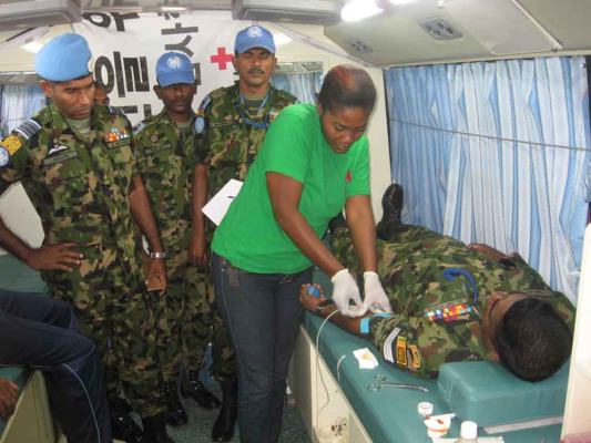 In addition to this, a newly constructed kitchen completed by the 18 Sri Lanka Battalion was declared open by the Contingent Commander, Colonel Nandana Dunuwila RWP, RSP and handed over to an orphanage on the day. Further, a blood donation campaign was also conducted where 50 soldiers from the Army, Navy and Air force donated blood.