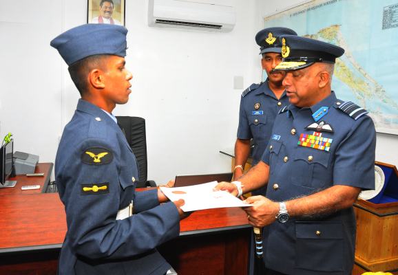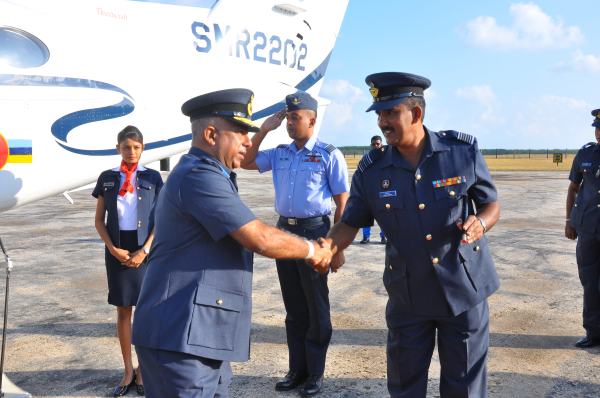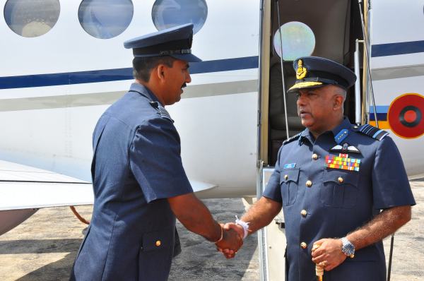 Upon arrival the Commander was received by the Commanding Officer, Wing Commander GHP Nanayakkara, and was accorded a street lining commanded by Flying Officer GP Amarasiri.