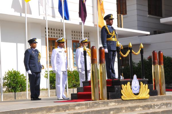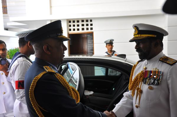 The Commander was received with a parade at Navy Headquarters. After a discussion on matters of mutual interest, mementos were exchanged between the Commander of the Navy and the Commander of the Air Force to mark this occasion.