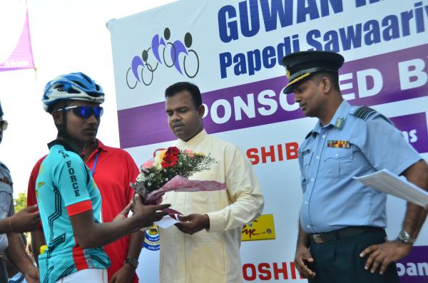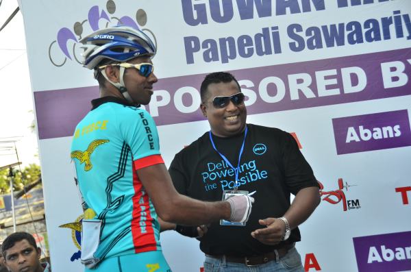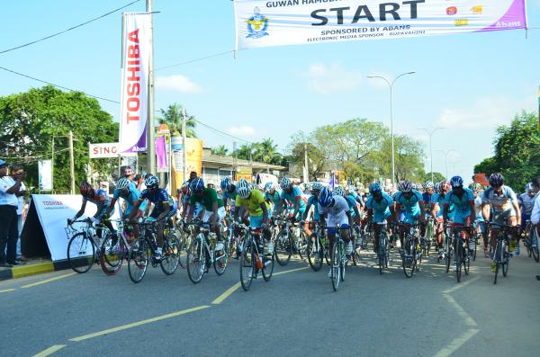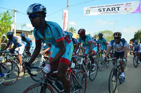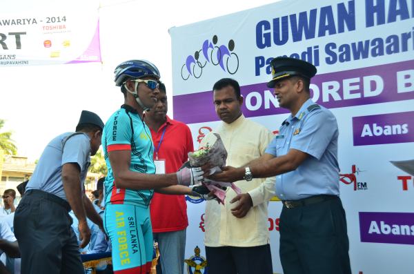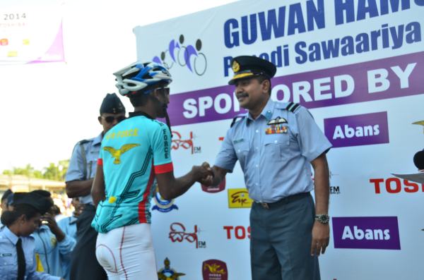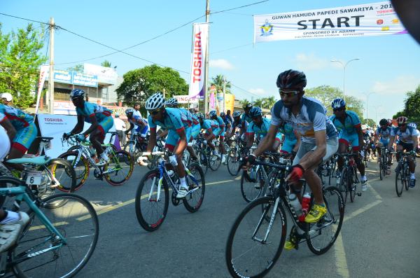 The 2nd day of Guwan Hamuda Papedi Sawariya commenced today when the Commanding Officer Sri Lanka Air Force Sigiriya, Wing Commander CP Gunatilleke flagged off the race from Dambulla. The riders covered 120km during the day and finished in front of the LG Abans Showroom in Vavuniya.