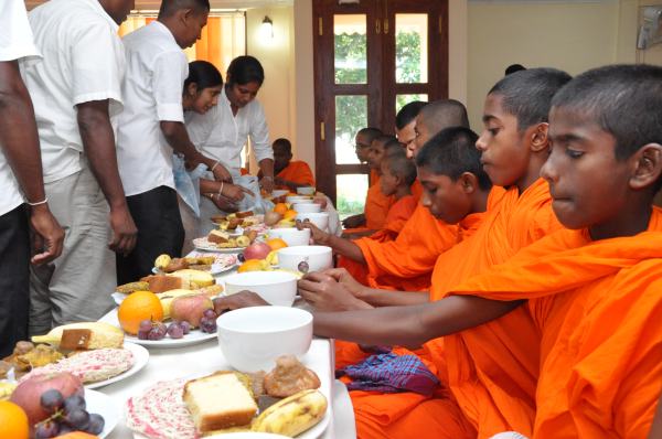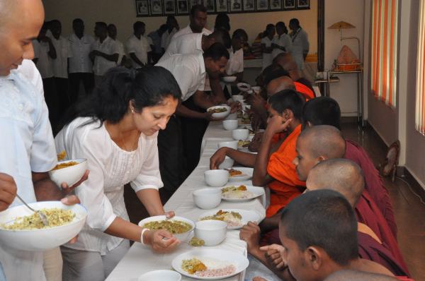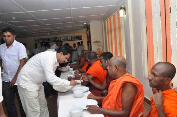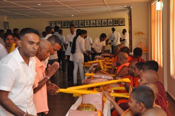 Subsequent to the all night Pirith chanting, an alms giving was offered to the Venerable Maha Sanga on the morning of 21st March 2014. This meritorious endeavor culminated with all those who were present partaking in the alms giving and the Venerable Clergy being offered "Ata Pirikara".