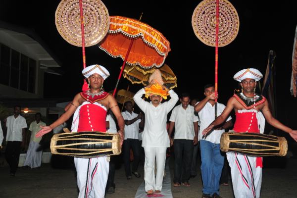 An all night "Pirith Chanting" Ceremony was held at SLAF Station Weerawila on 20th March 2014. Prior to the commencement of the ceremony the "Reliquary" (Karanduwa) was taken from the Weerawila Temple to the "Pirith Manadappaya" inside the Station by the Commanding Officer Gp Capt MDJ Wasage in a very colorful procession.