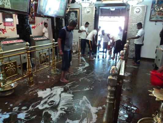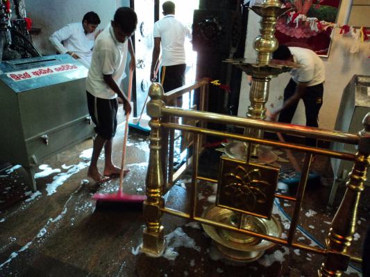 Weerawila to clean the interior of the Katharagam Maha Devala. This was
