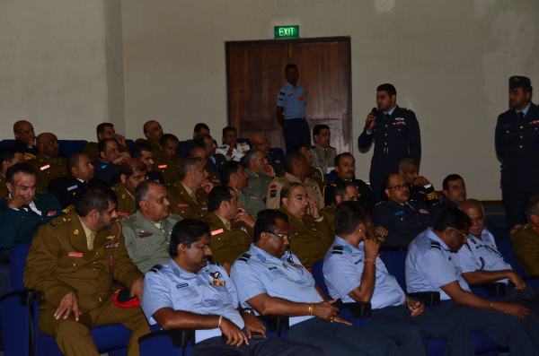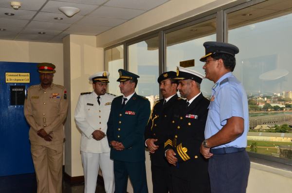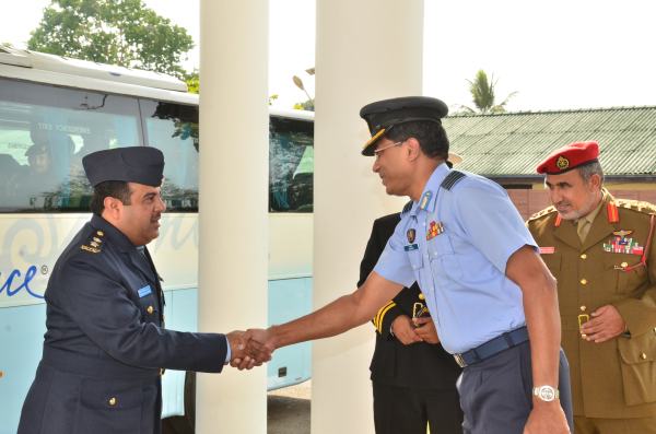 The delegation comprised of 38 Officers from the Omani Army, Navy and the Air Force and four Army officers from Bahrain, Saudi, Yemen and Lebanon. The delegation was headed by Colonel Sulaiman Sabil Ali Balsuhi . On their arrival to AFHQ, they were received by Group Captain PLJ Kodippily. Subsequently, the delegation had the opportunity to meet the Chief of Staff of the Air Force, Air Vice Marshal GP Bulathsinghala.