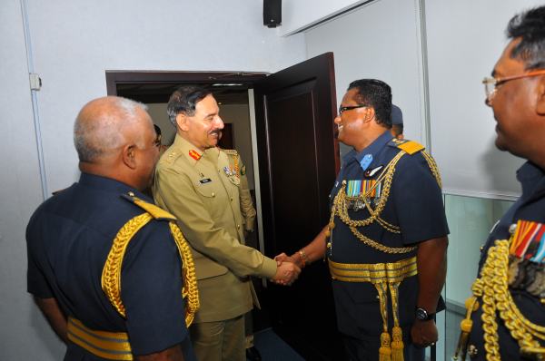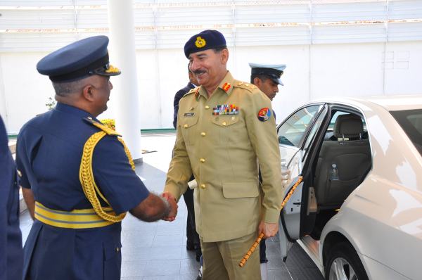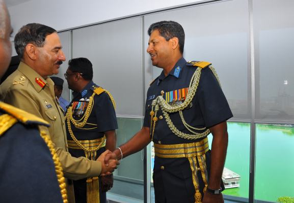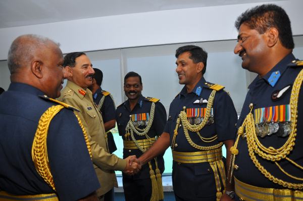 General Rashad Mahmood, Chairman Joint Chiefs of Staff Committee of Pakistan who is currently in Sri Lanka along with a delegation on a 5-day official visit, called on the Commander of the Air Force, Air Marshal Kolitha Gunatilleke, at the Air Force Headquarters this morning (9th April 2014).