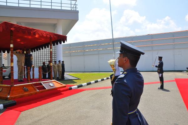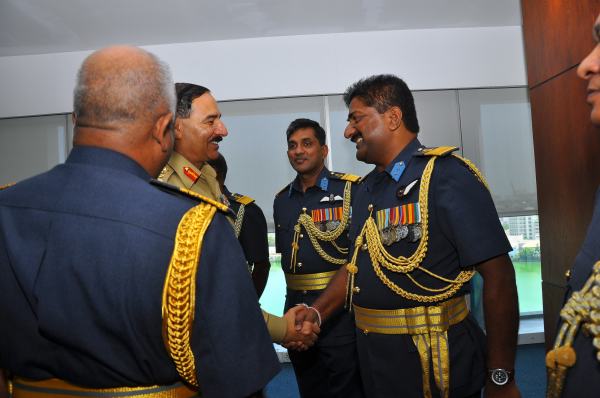 The Chairman Joint Chiefs of Staff Committee was received upon arrival by the Commander of the Air Force Air Marshal Kolitha Gunatilleke and Air Commodore DJC Weerakoon, the Commanding Officer SLAF Station Colombo and thereafter was accorded a Guard of Honour.