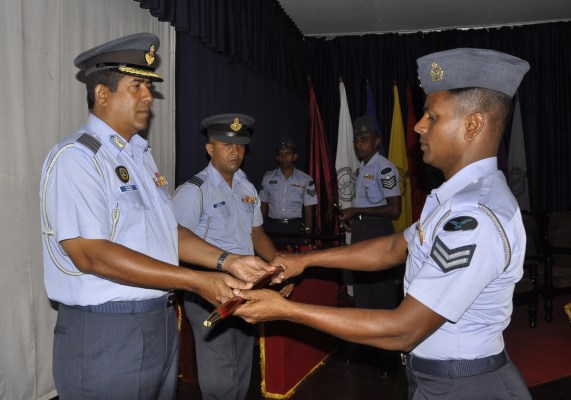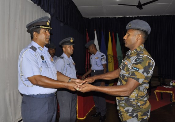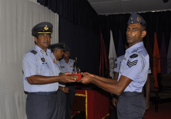 The Commanding Officer of the School Group Captain WWPD Fernando who graced the occasion as the Chief Guest gave away the Pace Sticks, Canes, and Lanyards for the newly passed out instructors. He also presented the trophies for those who emerged as winners in their Academic and Training disciplines.
